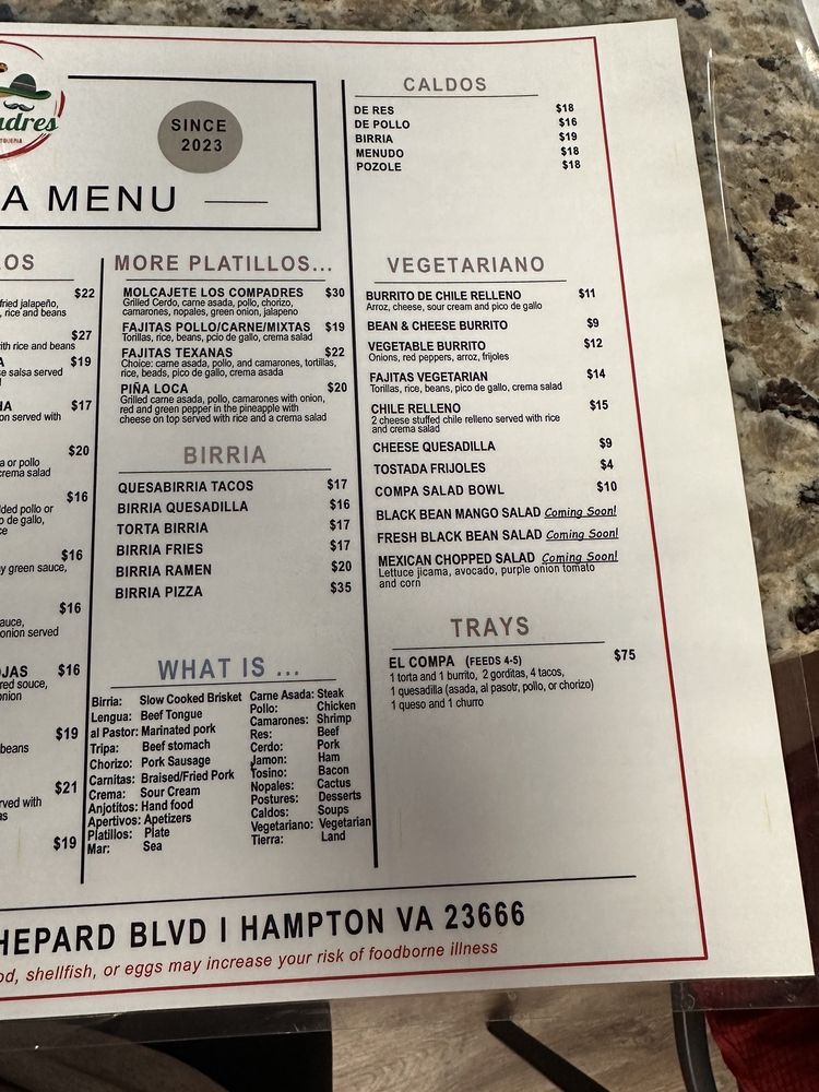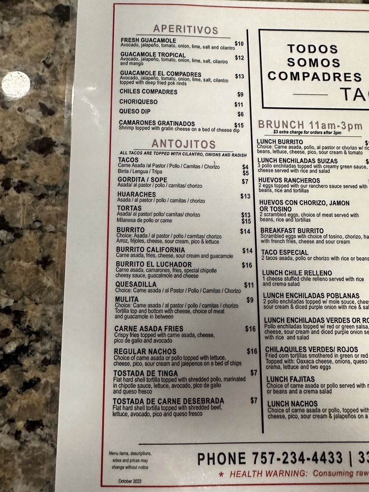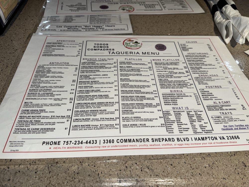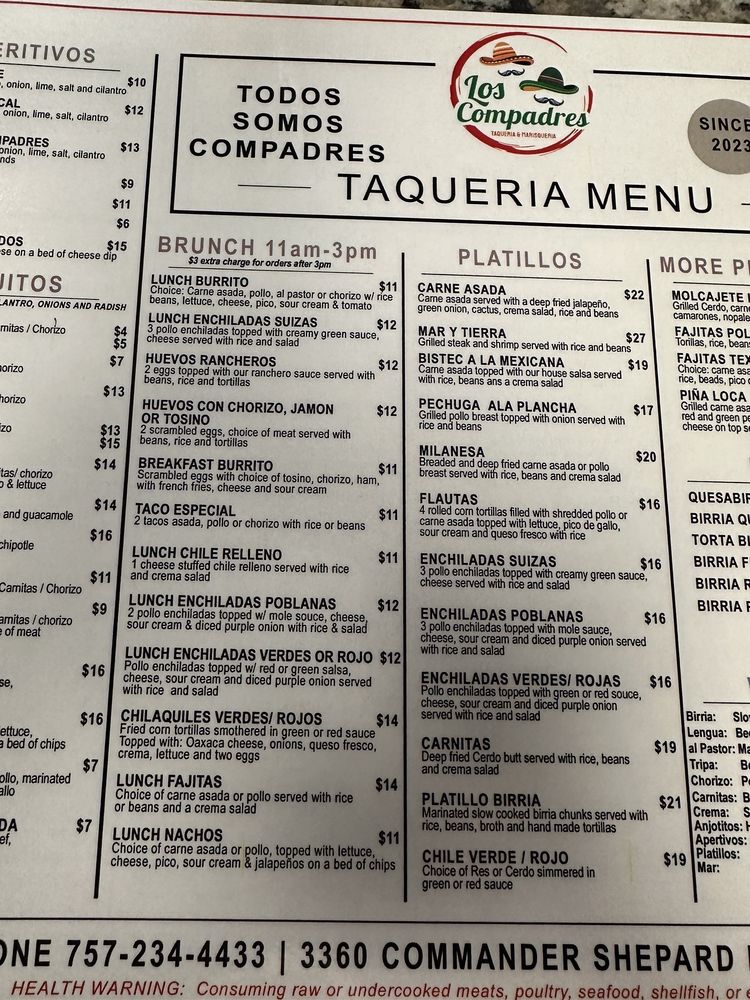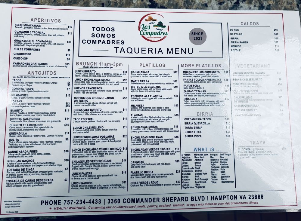 Welcome to Los Compadres Taqueria & Marisqueria, a vibrant Mexican restaurant that brings the spirit of authentic Mexican cuisine to Hampton, VA. Here, you can indulge in an array of mouthwatering dishes, from savory birria tacos served with flavorful consomé to the hearty burrito El Luchador and the beloved molcajate Los Compadres, all crafted with passion and precision.