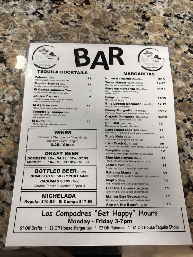 Join us for Taco Tuesday or savor the best micheladas and ceviche tostadas in the area. Your next meal at Los Compadres is destined to be a flavorful journey!